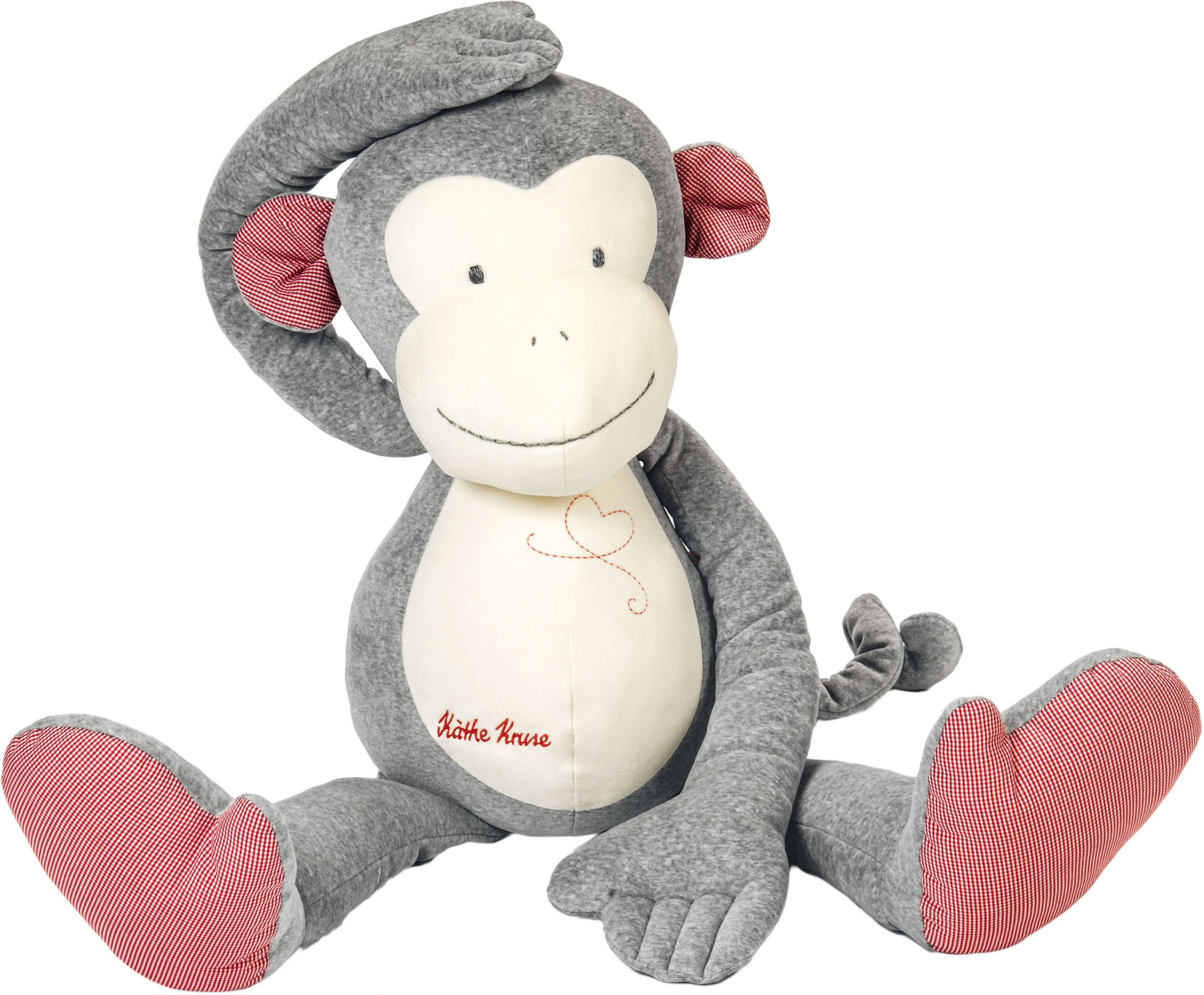 95 cm großer Affe XXL aus der Affe Carlo-Serie. Er hat einen weichen Körper aus