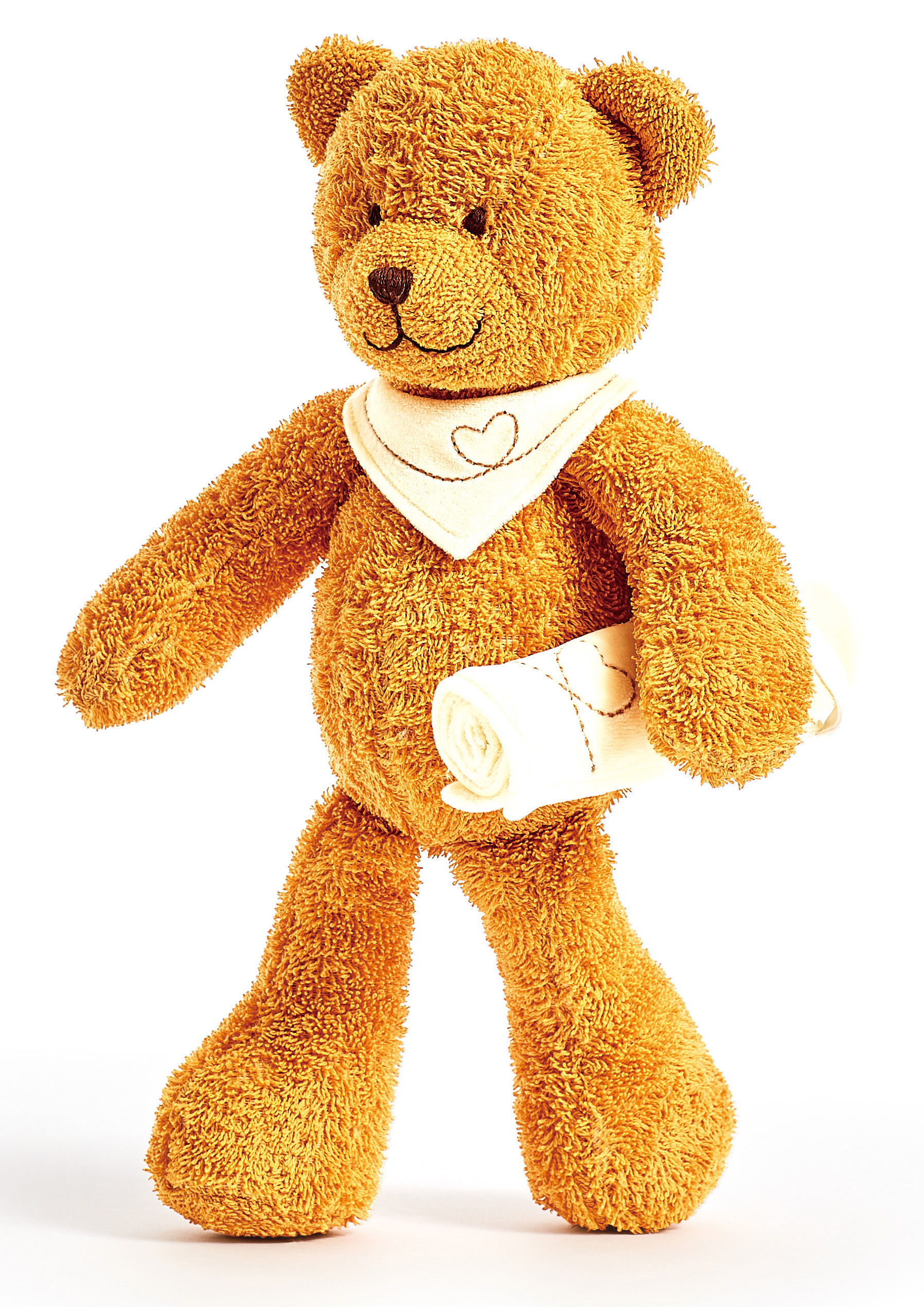 Bär Caramel, 35 cm großes Kuscheltier aus Frottee mit beigem Halstuch und