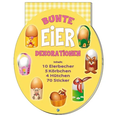 Trötsch Bunte Eierdekorationen Inhalt: 10 Eierbecher 5 Körbchen 4 Hütchen 70 Sticker