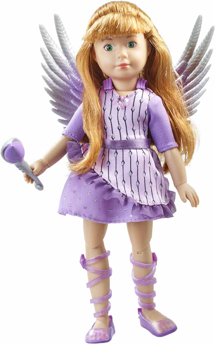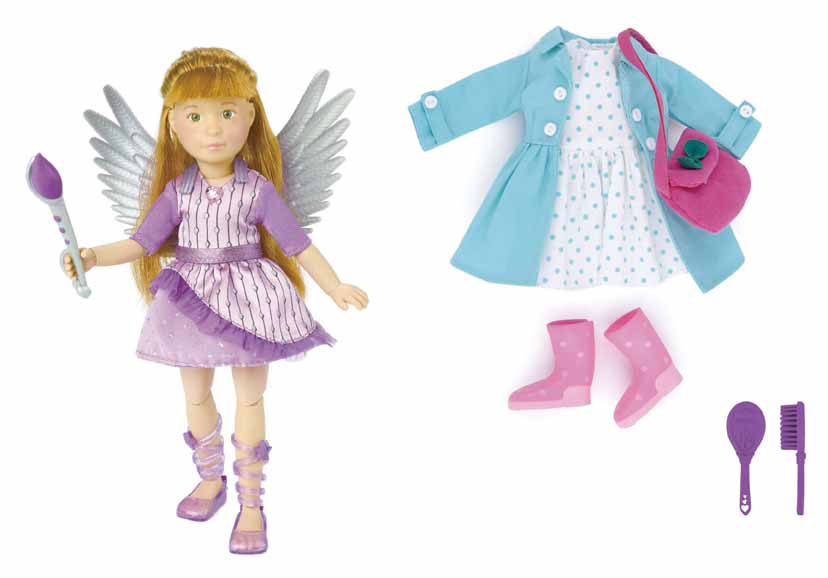 Deluxe Box bestehend aus einer 23 cm großen Kruselings- Puppe im magischen Outfit mit Zubehör sowie einer Alltagsbekleidung. Chloe hat rote Haare und grüne Augen. Sie trägt ein lilafarbenes Glitzerkleid, Schuhe, Flügel und ihren magischen Zauberpinsel. Ihre Alltagskleidung besteht aus einem gepunktetem Kleid, Mantel, Stiefeln sowie einer pinken Tasche. Sie bringt für ihre Haare ihre eigene Haarbürste mit. Die Puppe ist aus hochwertigem Vinyl, mit beweglichen Gelenken und lebensecht aussehenden Glasaugen. Geeignet für Kinder ab 36 Monaten