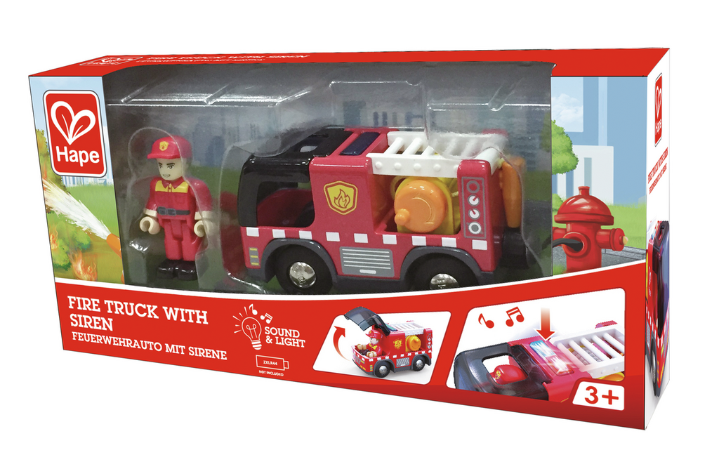 - KOMPATIBEL MIT EISENBAHN-SETS: Das Feuerwehrauto ist mit allen Hape-Eisenbahnsets und den meisten großen Herstellern von Spielzeugeisenbahnen kompatibel und sorgt für rasanten Fahrspaß auf jedem Untergrund. Mit dem Magneten lassen sich andere Fahrzeuge am Heck des Autos befestigen.