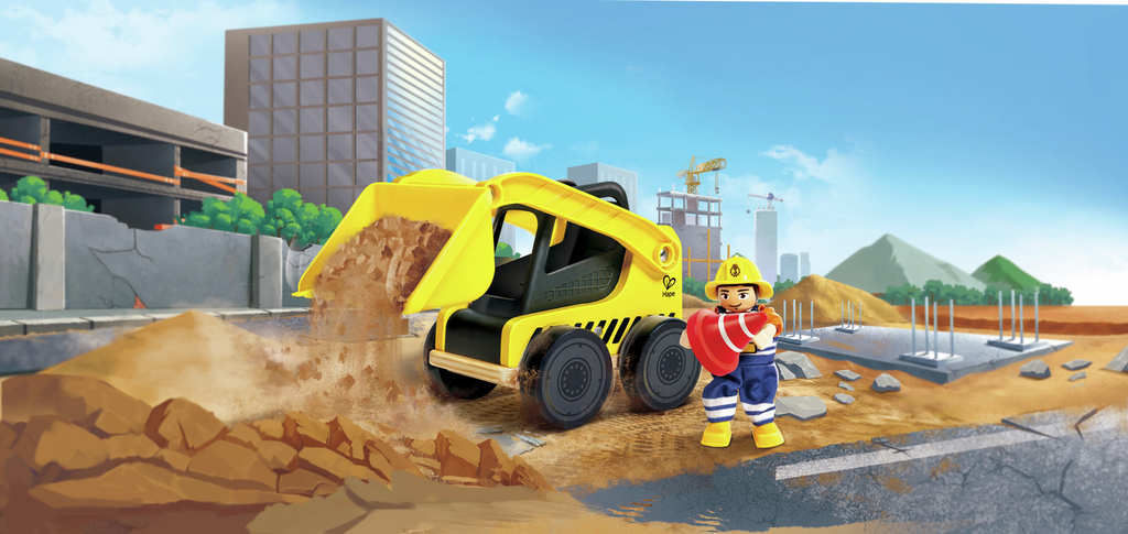 Mit dem tollen Kompaktlader können Kinder nach Herzenslust kreativ werden und ihre Fantasie anregen. Er ist mit einer großen, flexiblen Schaufel ausgestattet, die genug Platz zum Buddeln bietet. Auf der Rückseite befindet sich ein Stauraum, in dem sich allerlei Dinge verstauen lassen. Ein hölzerner Bauarbeiter und zwei Straßenkegel sind auch dabei. Damit können Kinder ein spannendes, realistisches Rollenspiel erleben. Das Set ist aus langlebigen, nachhaltigen und kindersicheren Materialien gefertigt. Es fördert die Kreativität, soziale Interaktion, Sprachkenntnisse und die Entwicklung der Feinmotorik. Mit seinem charmanten, natürlichen Design bietet der Kompaktlader Kindern eine unterhaltsame und lehrreiche Möglichkeit, das Bauen und die Sicherheit im Straßenverkehr zu erkunden.