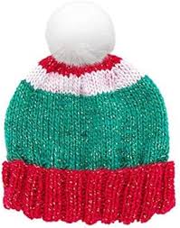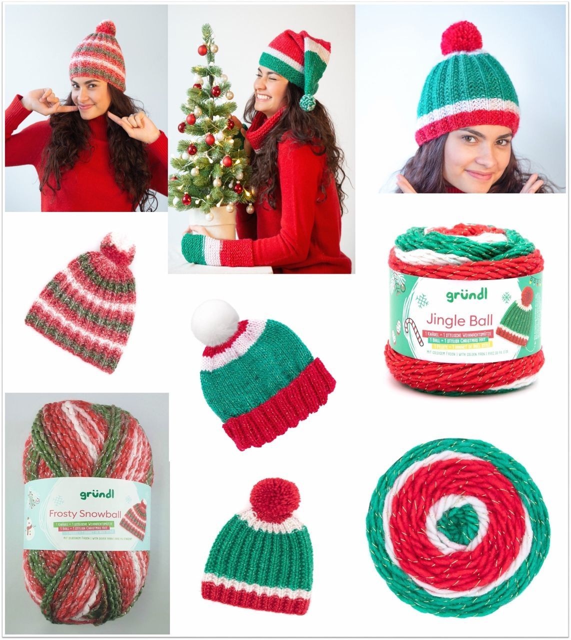 100g Jingle Ball Bobbel – in einer Farbkombination weiß-grün-rot mit Goldfaden inklusive Anleitung für eine stylische Weihnachtsmütze aus einem Knäuel auf der Innenseite der Banderole.