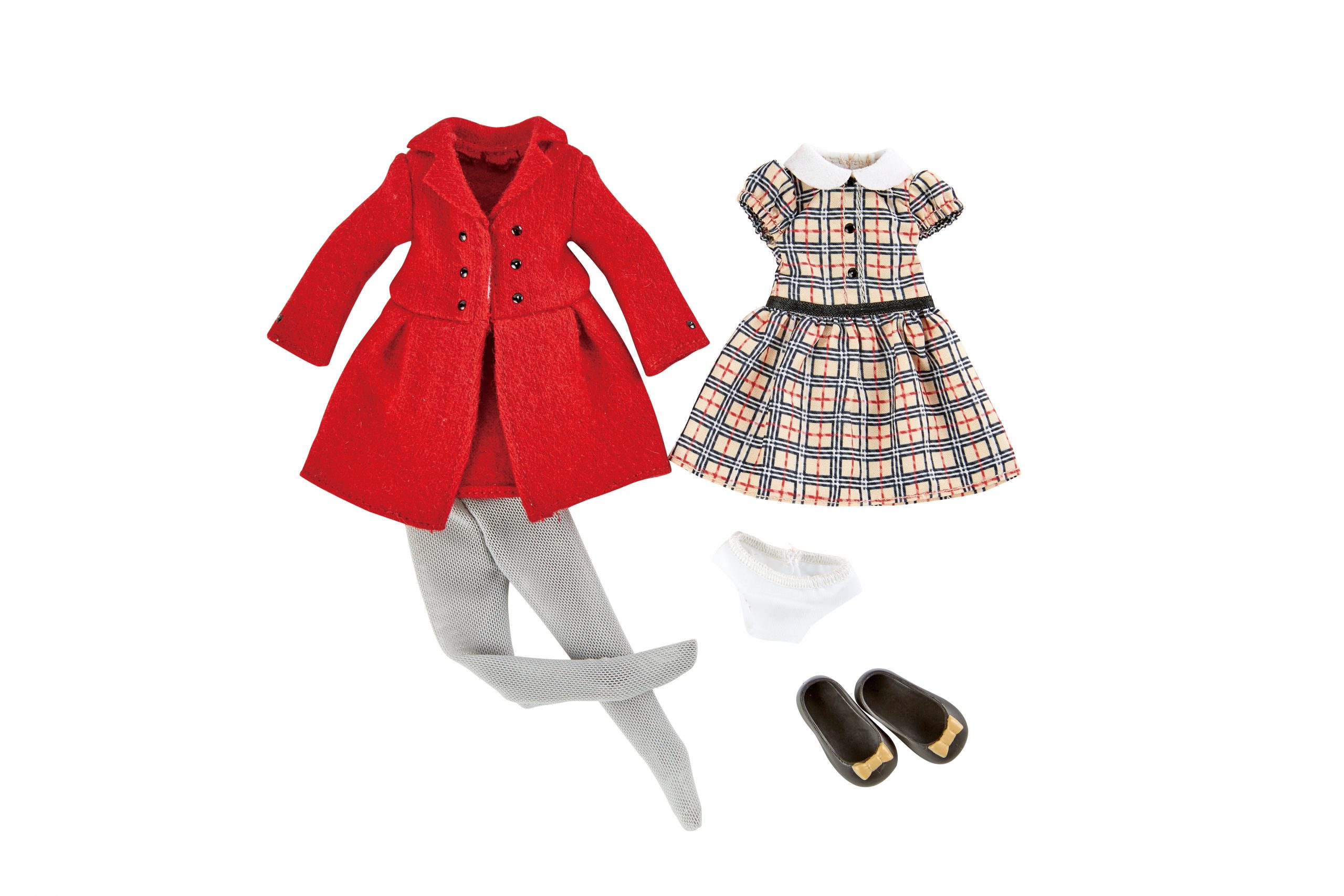 Dieses Bekleidungsset besteht aus einem Mantel, Kleid, Strumpfhose, einer weißeb Unterhose und Schuhen . Für alle Kruselingspuppen geeignet. Altersempfehlung ab