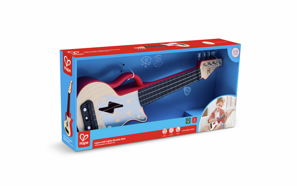 - Ukulele mit Blinklichtern, die das Spielen erleichtern.