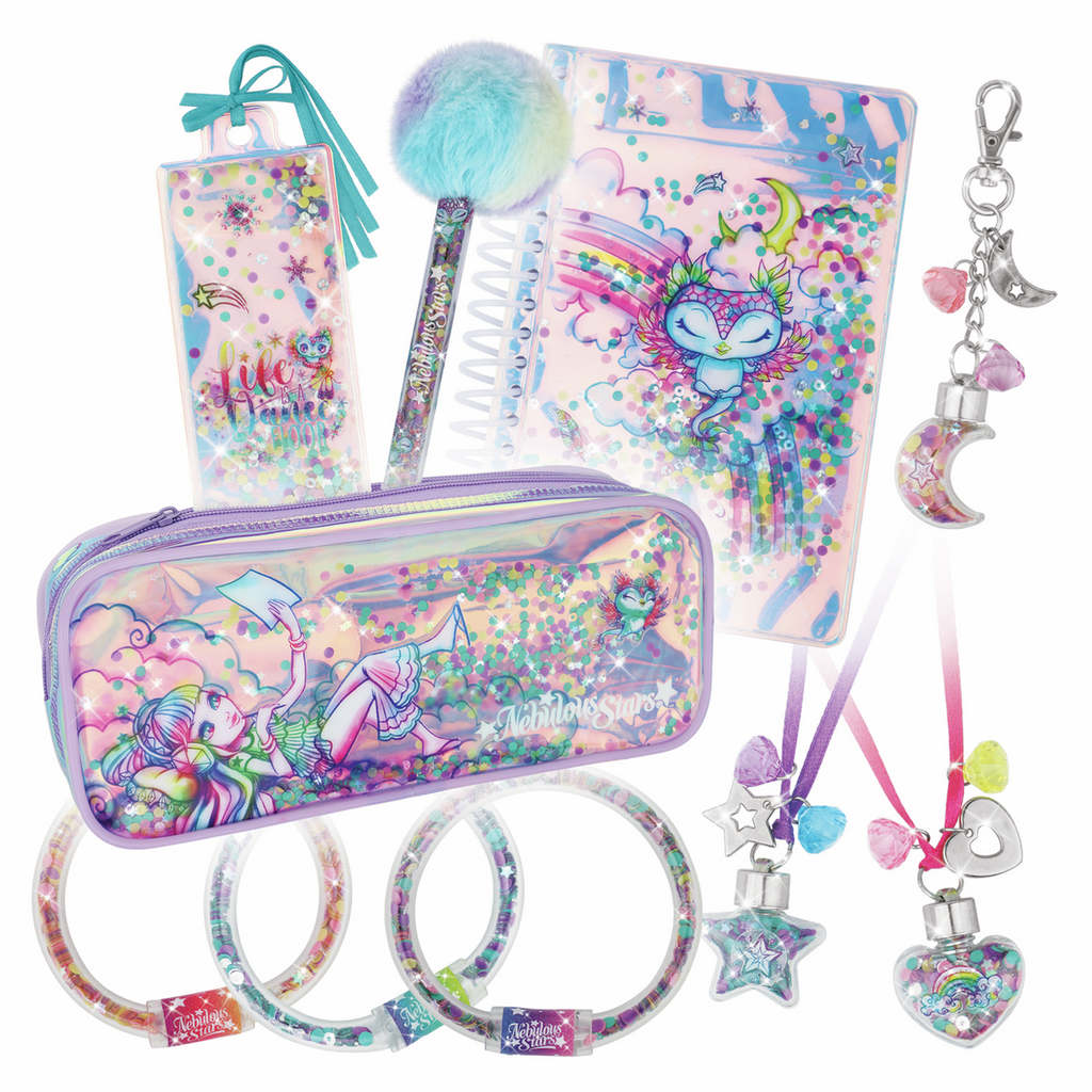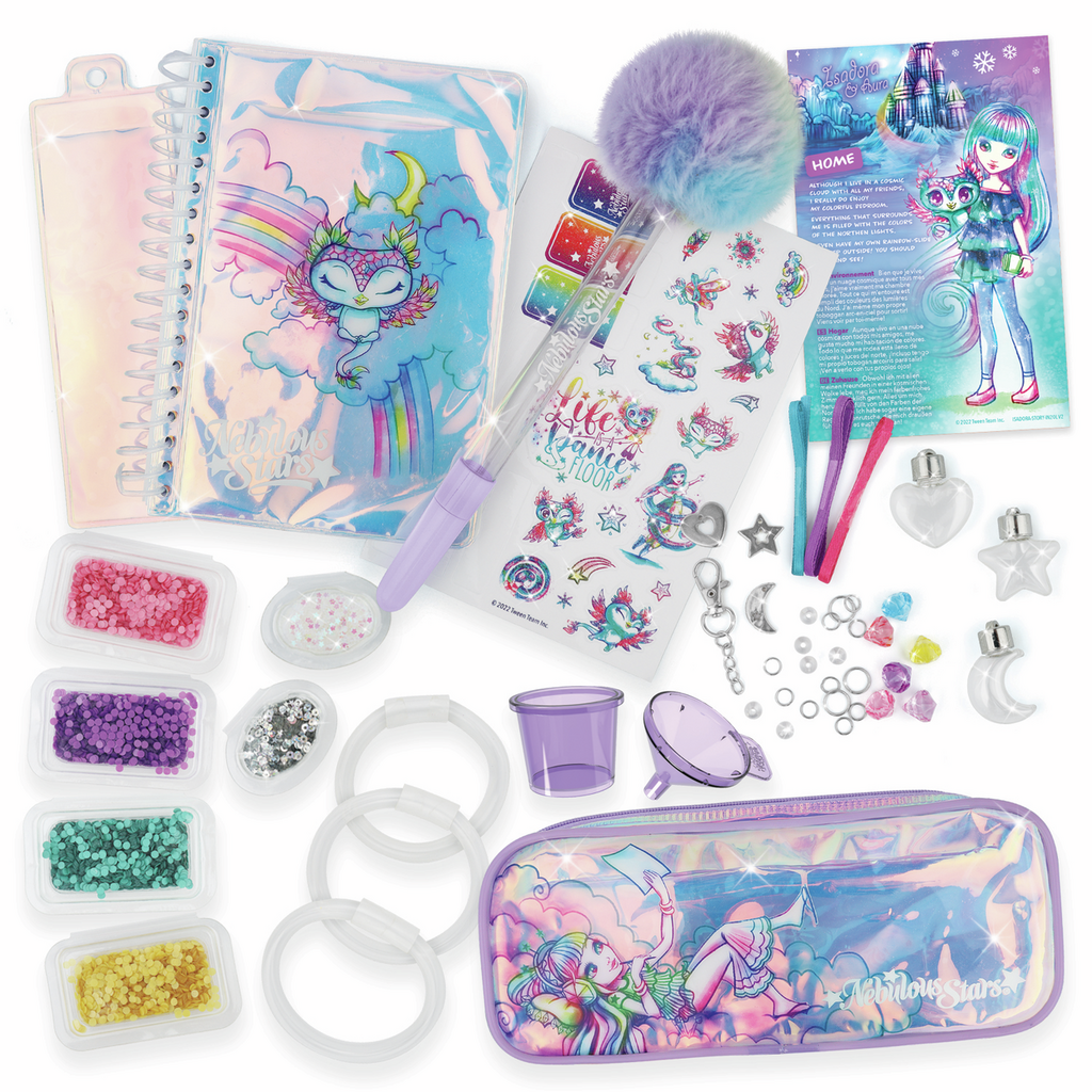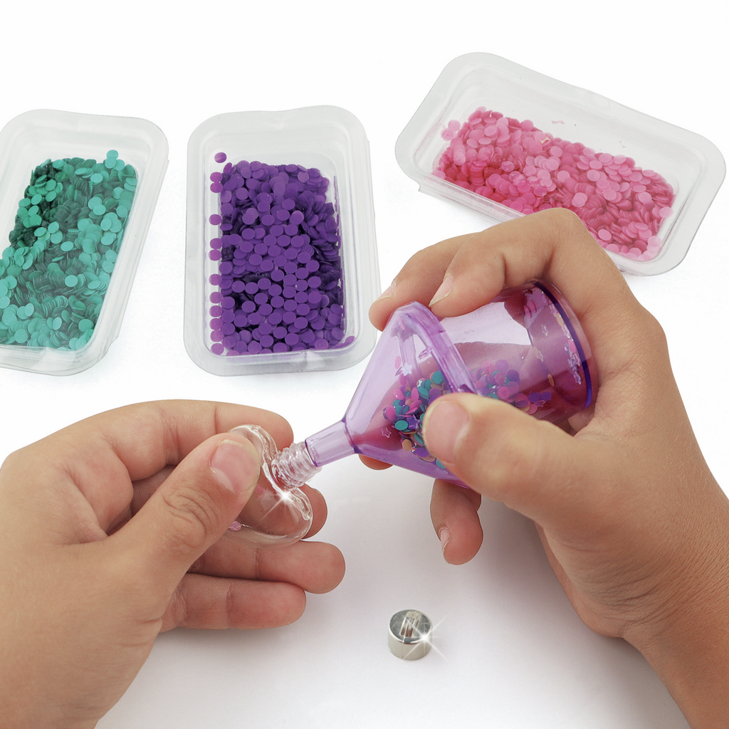 Alles glitzert! Gestalte selbst verschiedenste Accessoires, von denen eines funkelnder als das andere ist! Verschönere Notizblöcke, Etuis, Stifte, Ketten und vieles mehr mit Pailletten!