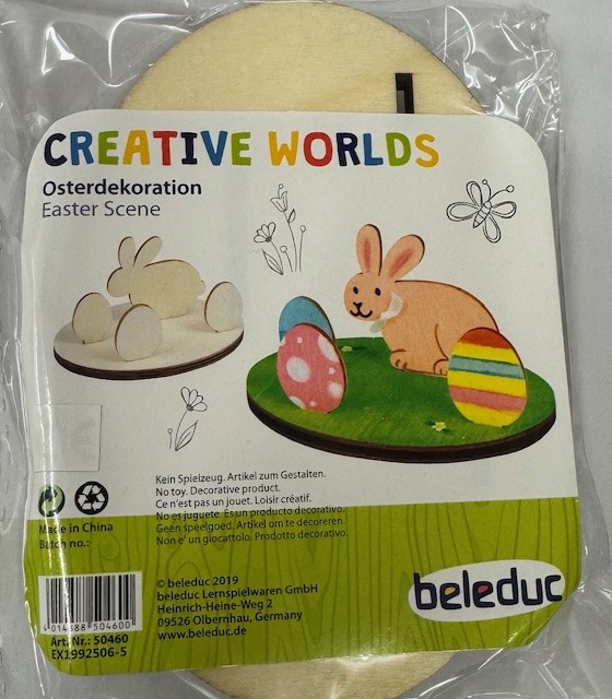 Dieses Kunstwerk aus Holz ist das perfekte Ostergeschenk! Einfach die einzelnen Teile zusammenstecken und schon kann die Osterszene bunt gestaltet werden