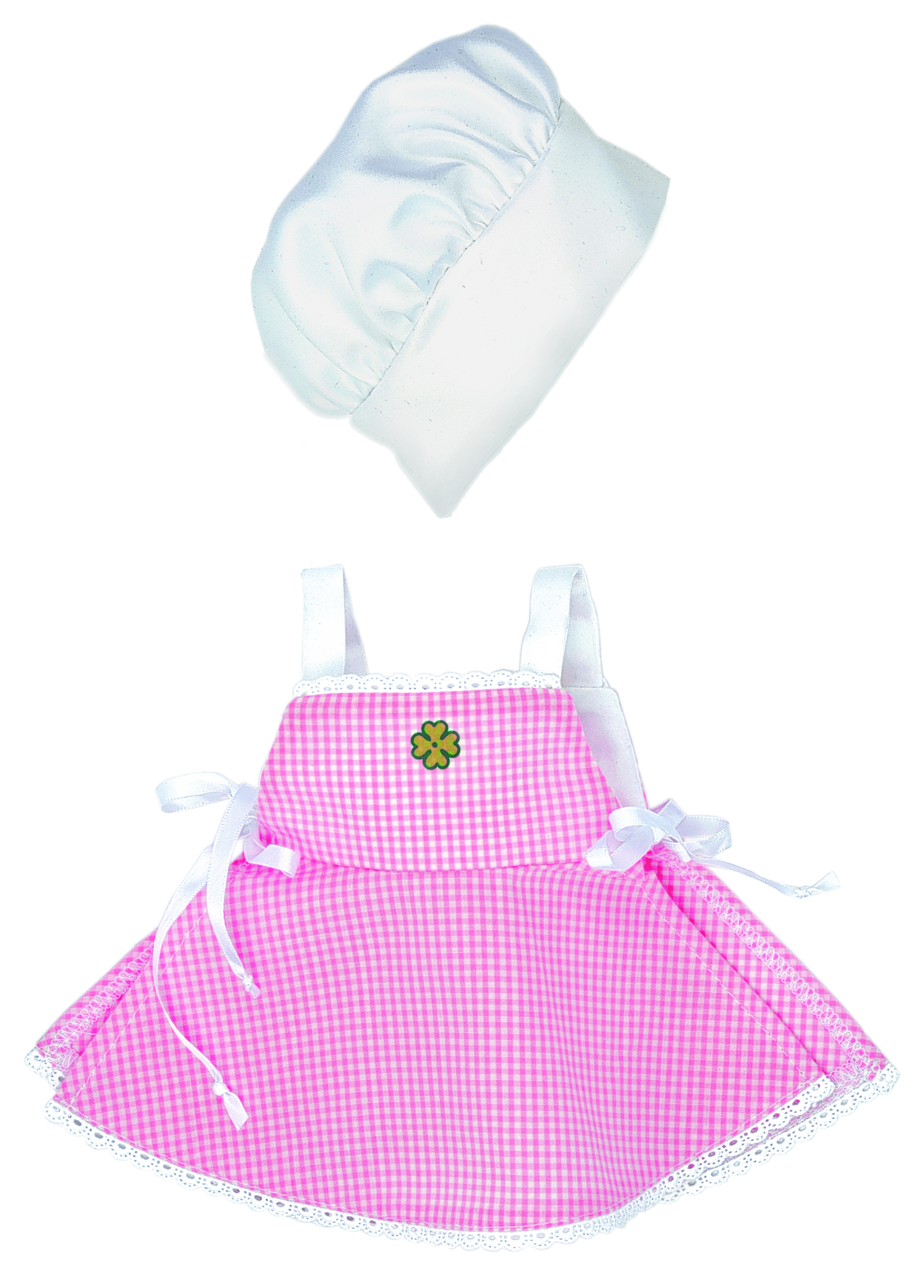 Im Set sind eine hübsche Küchenschürze und Kochmütze.