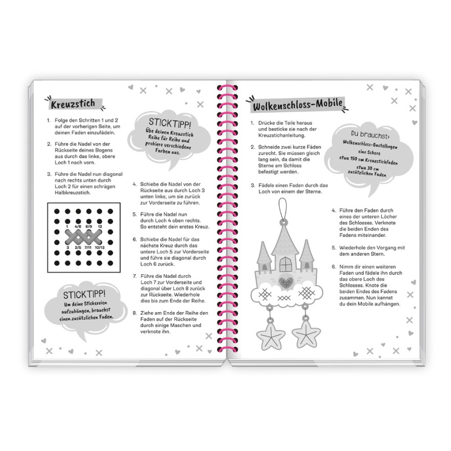 Dieses zauberhafte Beschäftigungsbuch führt kleine Bastelfreunde in die Kunst der Kreuzstich-Stickerei ein. Dank der einfachen Schritt-für-Schritt-Anleitungen verwandeln sich die zehn süßen Stickvorlagen im Handumdrehen in kleine Kunstwerke. Zusätzlichen Spaß garantieren die vielen Ausmalseiten mit Vorlagen aus der Märchenwelt. Mit Sticknadel und 8 Garnfarben!